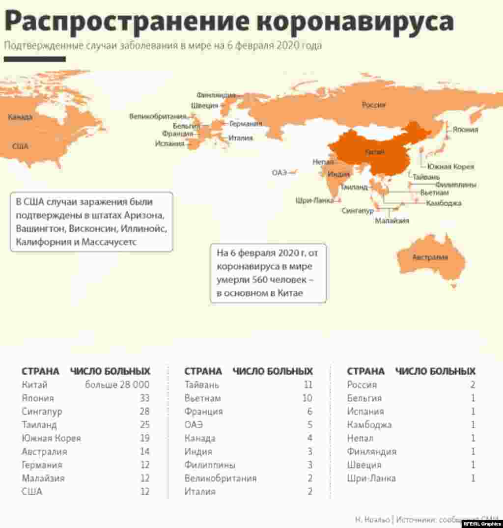 Подтвержденные случаи заболевания в мире на 6 февраля 2020 года