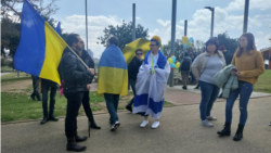 Как рассказали корреспонденту Кавказ.Реалии устроители акции, они договорились о ее проведении в группе в фейсбуке. Одна из участниц мероприятия, местная жительница Марина, заявила, что на израильских телеканалах, по ее мнению, ситуация в Украине освещается "однобоко".